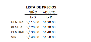 - No se acepta cambios de fechas, devoluciones ni reclamos.