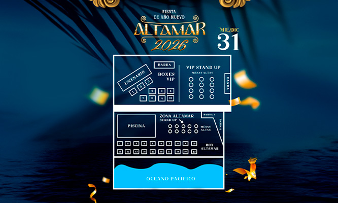 Ambas zonas comparten lo mejor del concepto: vista privilegiada, ambiente treintón, acceso al open bar y toda la experiencia ALTAMAR 2026 al ritmo de CHOCOLATE 2000 y la Edición Generación 2000.